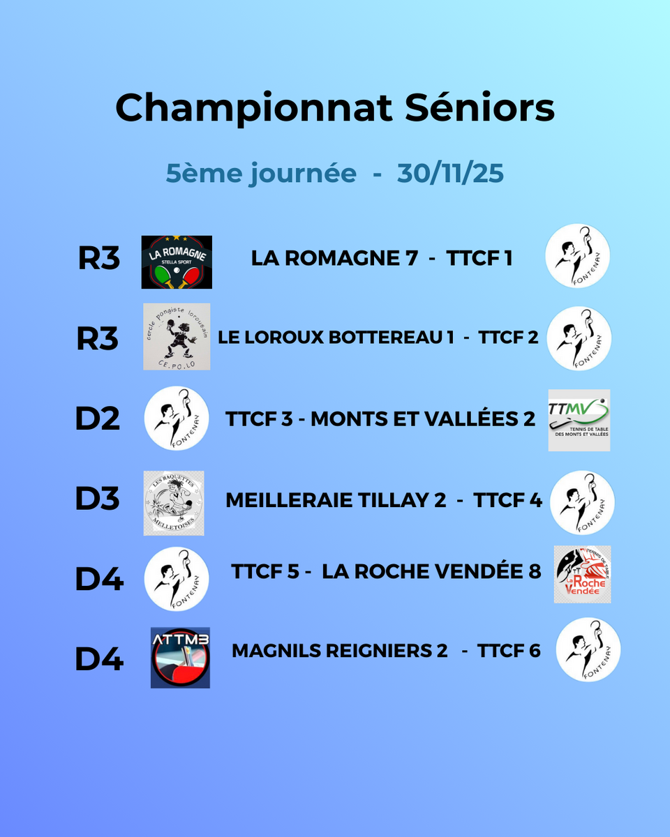 A l'extérieur, nos 2 R3 se déplacent à La Romagne et au Loroux Bottereau -> dimanche à 14h30, la D3 à la Meilleraie Tillay et une D4 au Magnils Reigniers --> dimanche à 9h.