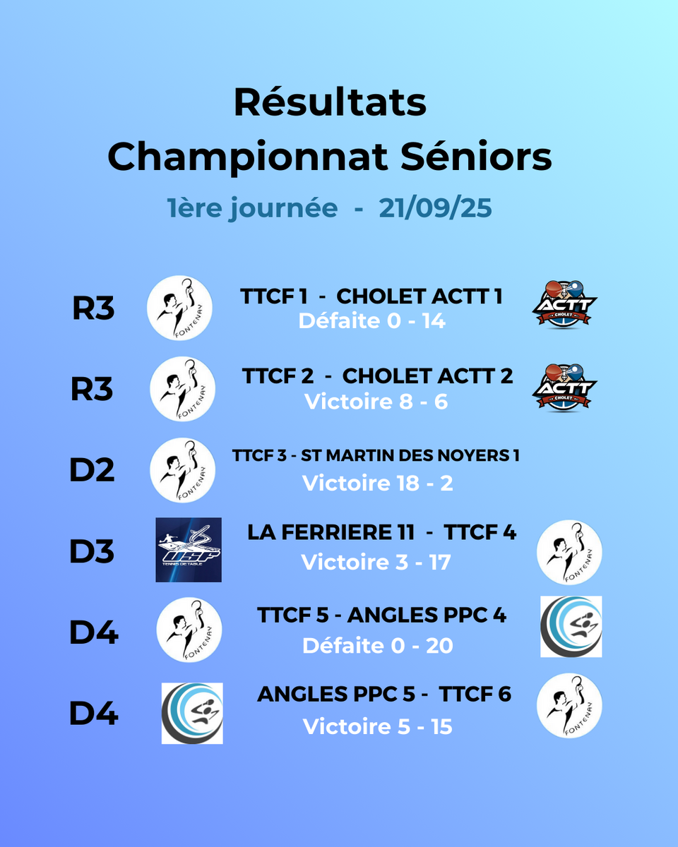 Résultats 1ère journée championnat Séniors